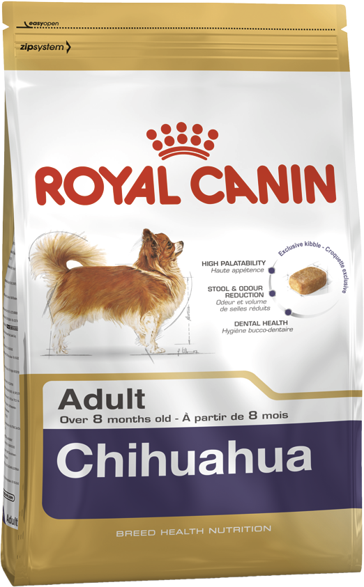 Розрахувати норму продуктів для маленького песика ще складніше, ніж для великого чотирилапого, тому ветеринарні лікарі радять спочатку переводити чихуахуа на готові сухі корми. Звичайно, для таких вразливих вихованців, як «чихи», потрібні продукти найвищої якості, як преміум-корми Royal Canin. В асортименті продукції компанії є навіть спеціальний сухий корм для цуценят мініатюрних порід . Переваги цього продукту: